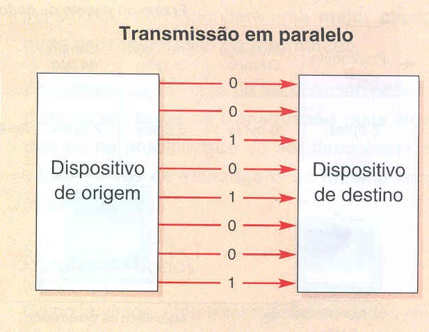 Este tipo de transmissão permite a comunicação entre o emissor e o receptor através do envio simultâneo de um conjunto de bits. Há necessidade de tantas vias quantos forem os bits utilizados.